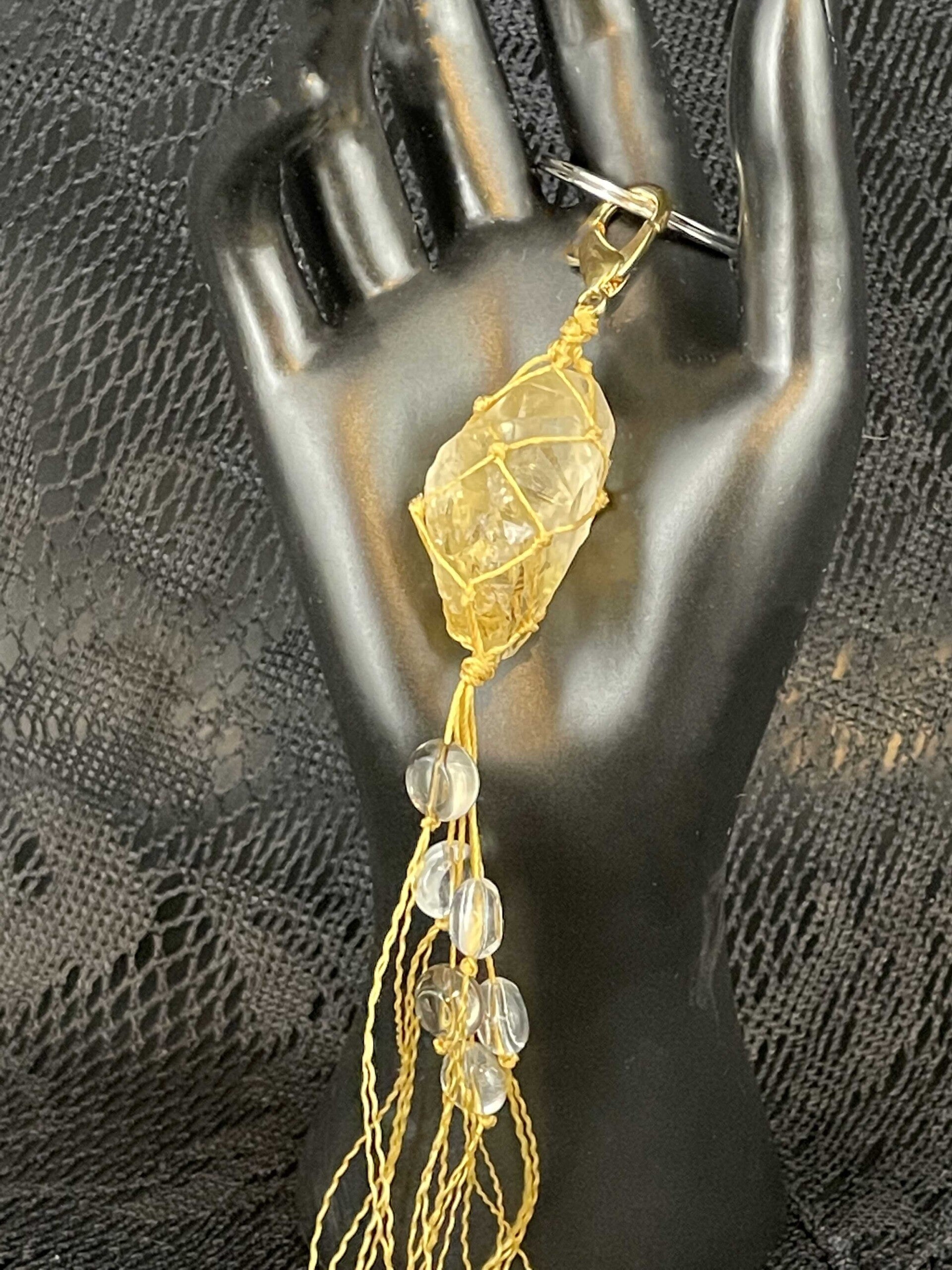 Citrine: This is a crystal of manifestation, imagination, and personal will. Carrying the power of the sun, it is warm, comforting, energizing, and life-giving. It encourages generosity and sharing good fortune. It transforms negative energy into positive energy. It works with the solar plexus chakra.